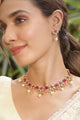 Dhiyona RJ Women 22KT Gold Plated Brass Metal Ruby Studded White Beaded Floral Necklace Set
