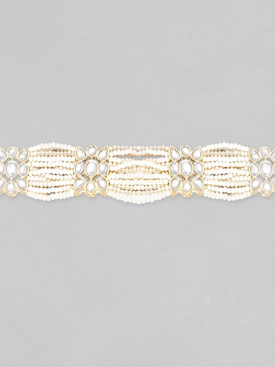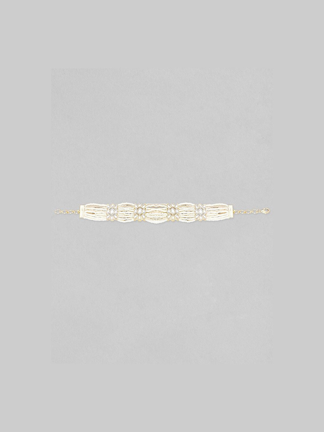 Dhiyona RJ Women Brass Kundan Studded Pearl Beaded Gold-Plated Multistrand Bracelet