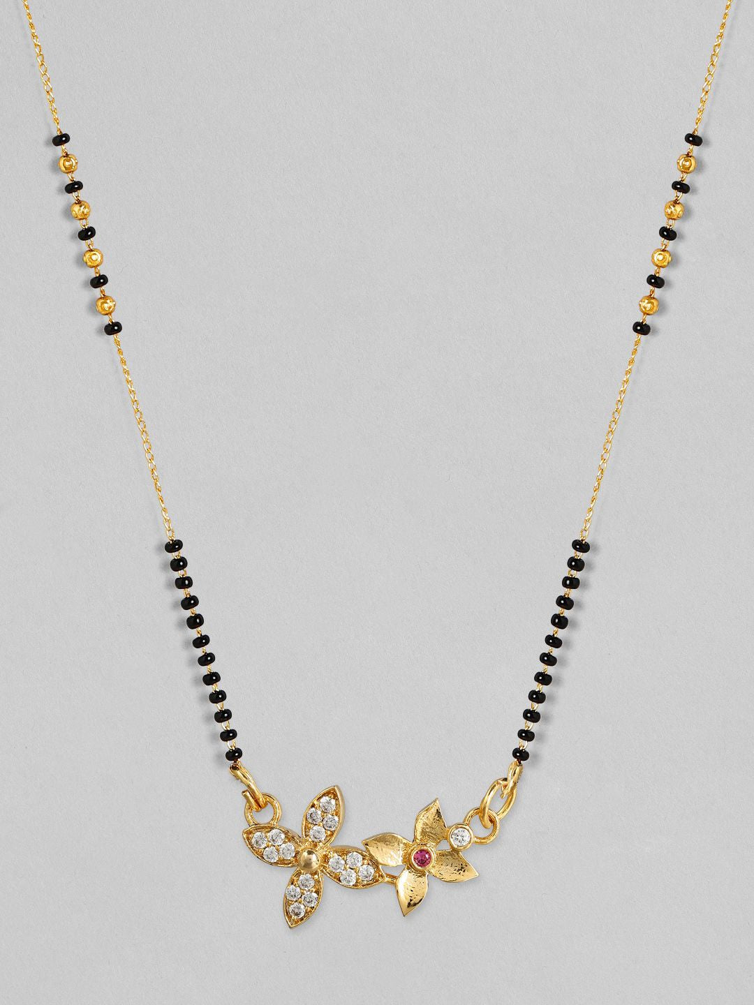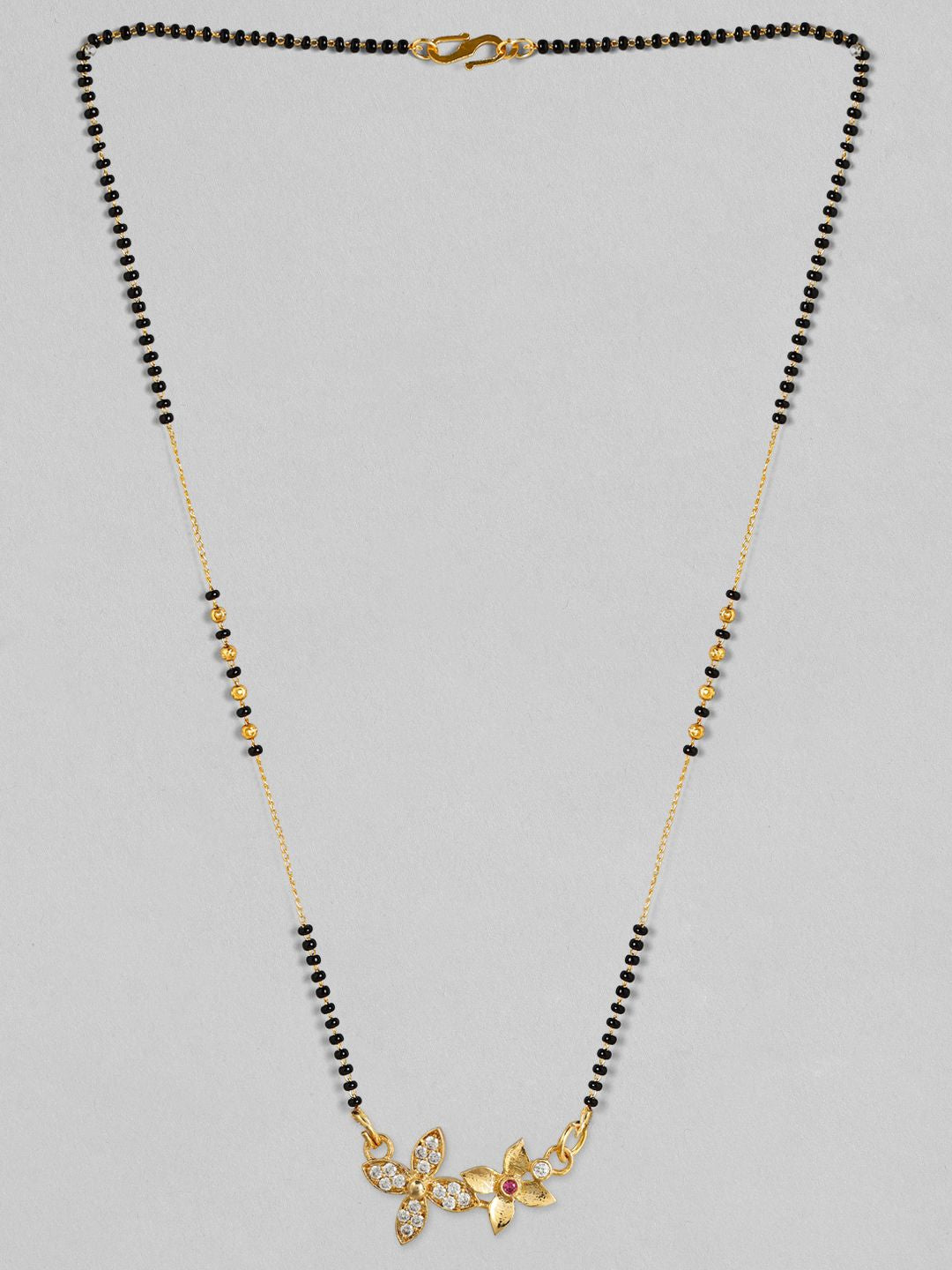 Dhiyona RJ Women Gold Plated Handcrafted Zircon Studded & Black Beaded Mangalsutra