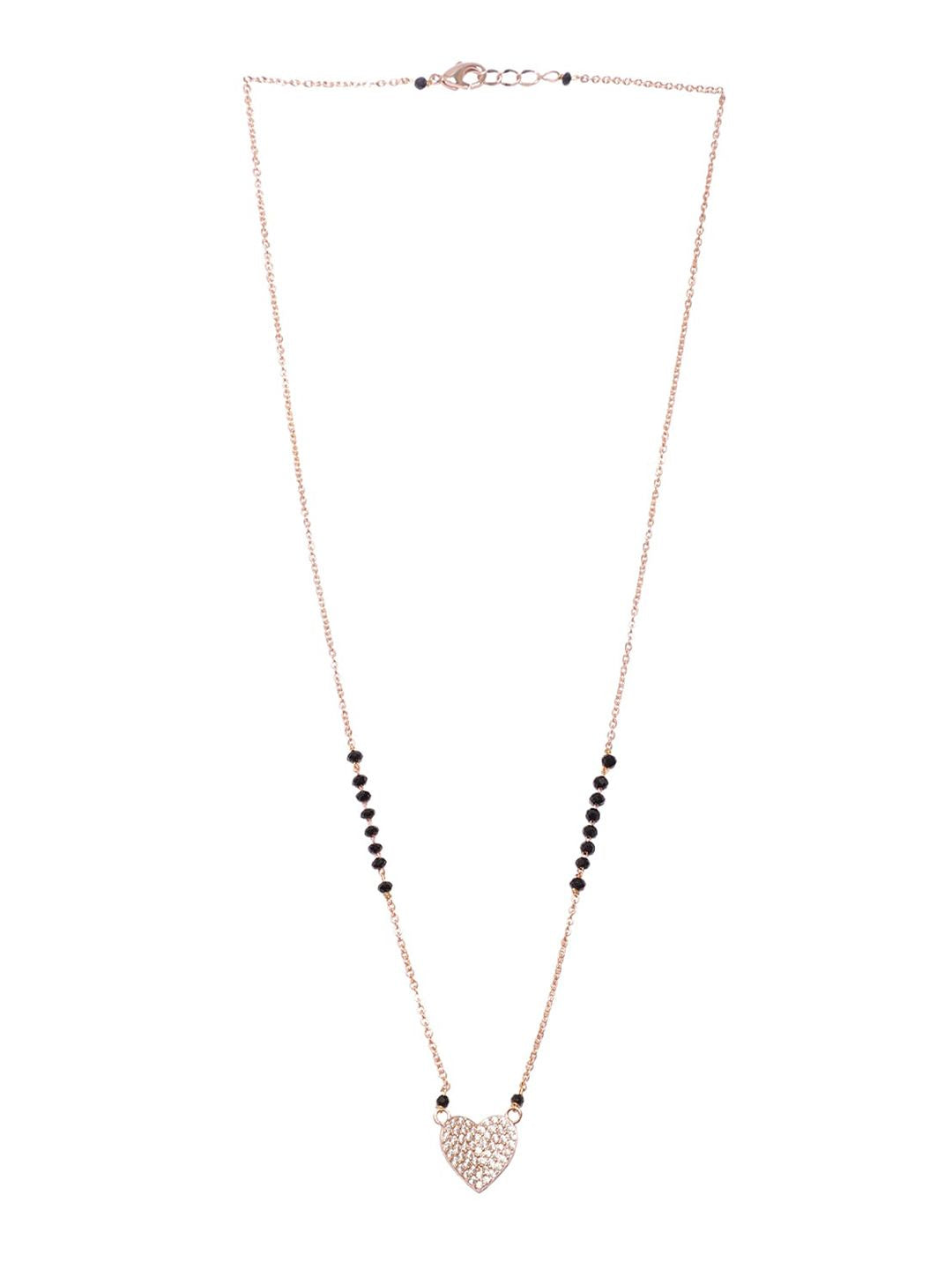 Dhiyona RJ Women Rose Gold Plated CZ Studded Heart Pendant Mangalsutra