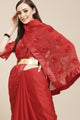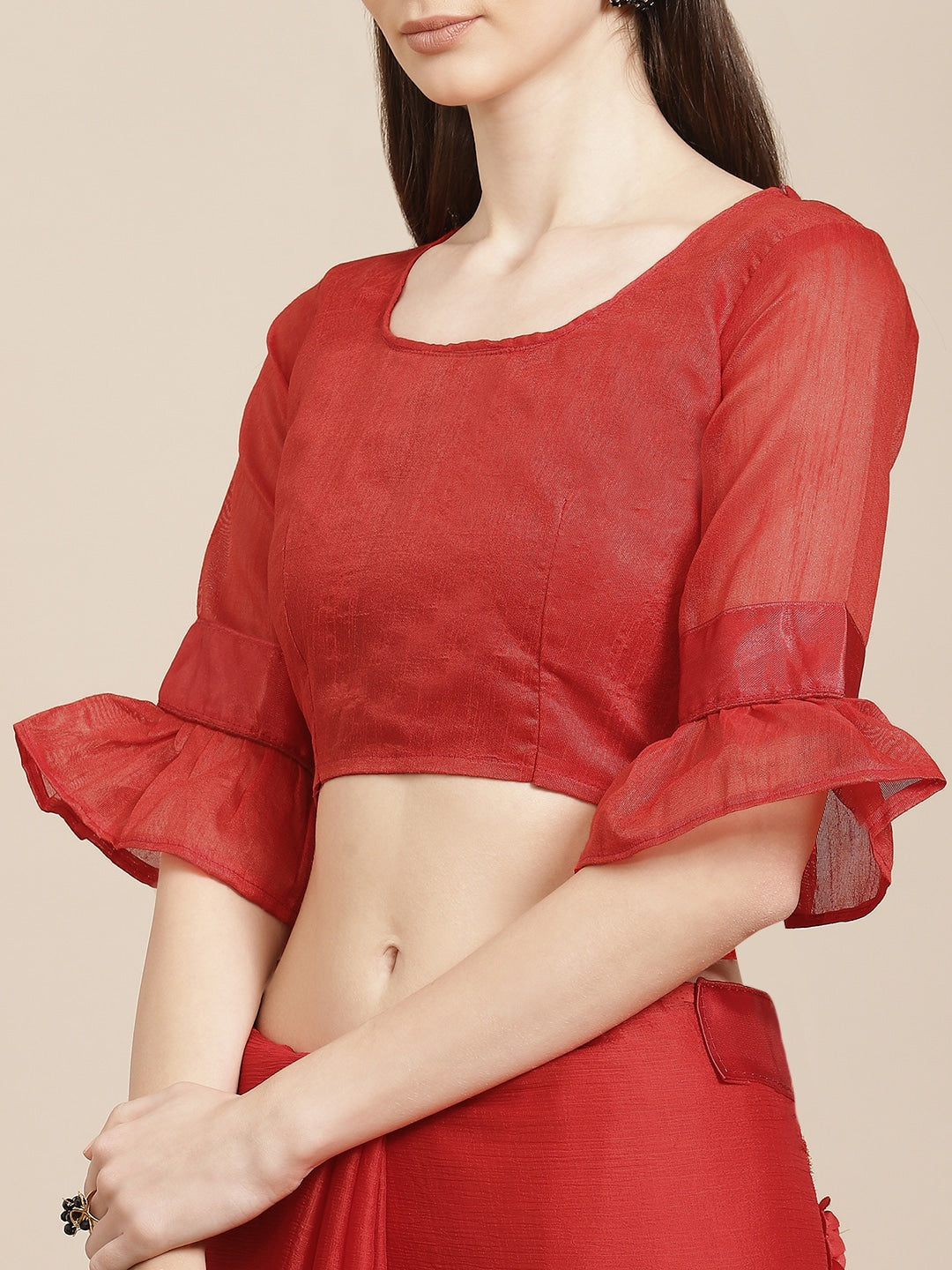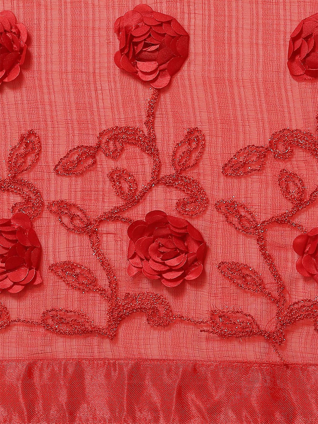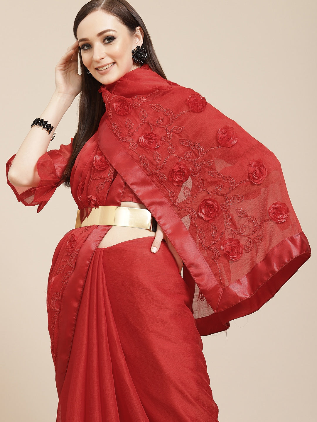 Arriva Fab Women's Chiffon Fabric With Satin Ribbon Flower And Cording Emboirdered Saree With Blouse ( KVD1065 )