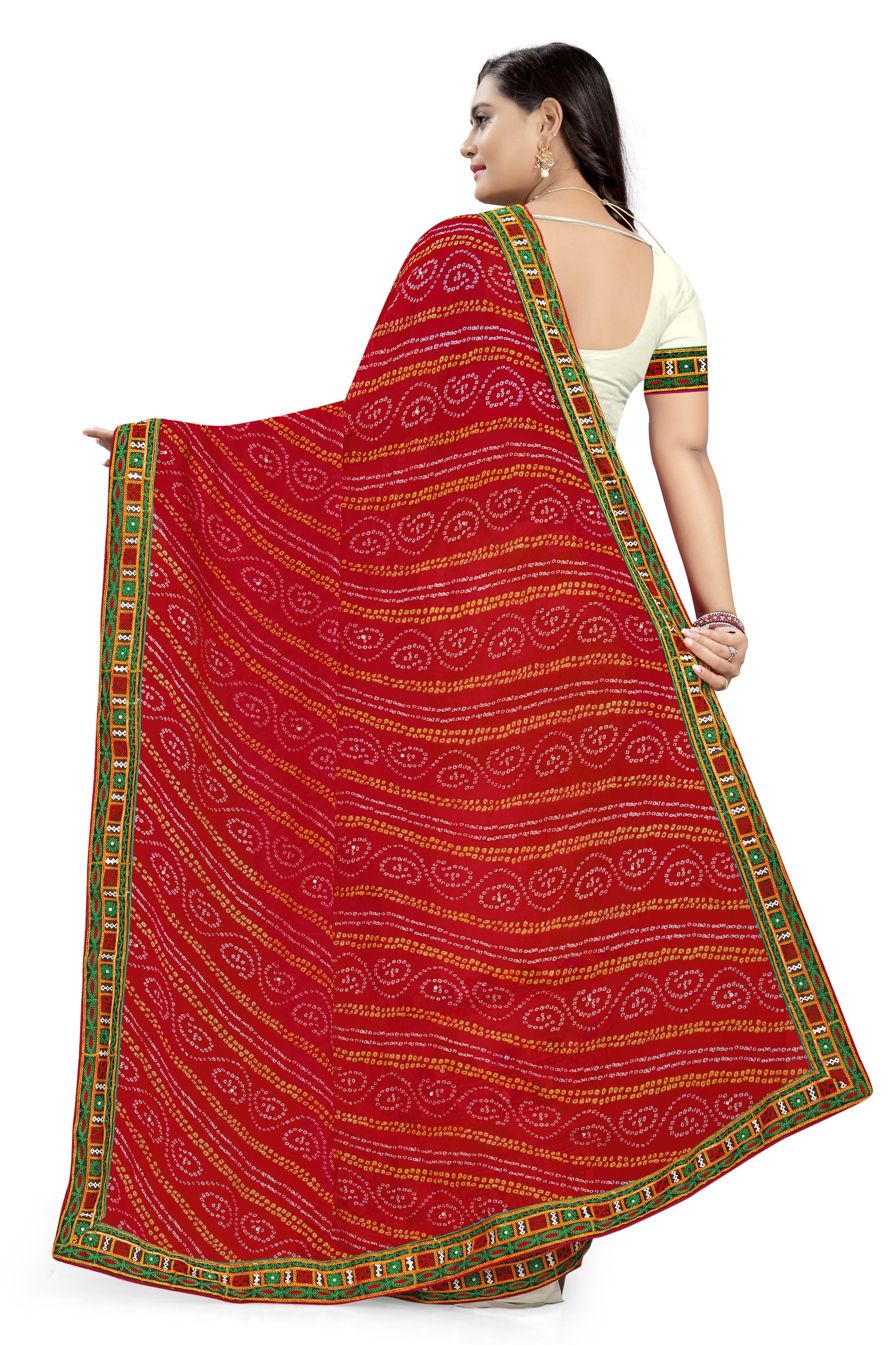 Arriva Fab Women's Half And Half Bandhani Pallu With Kutchi Embroidered Saree ( KVD932 )