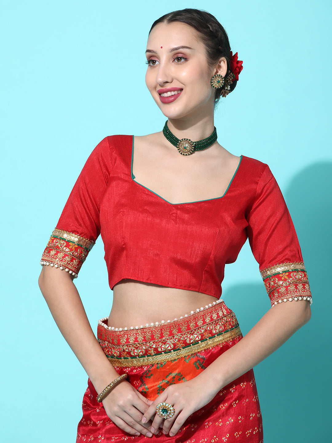 Dhiyona RV Women's Soft Dola Silk With Bhandhani With Colourful Embroidery Heavy Lace Saree With Blouse ( KVD2092 )