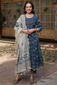 Blue printed Kurta with Trousers with dupatta