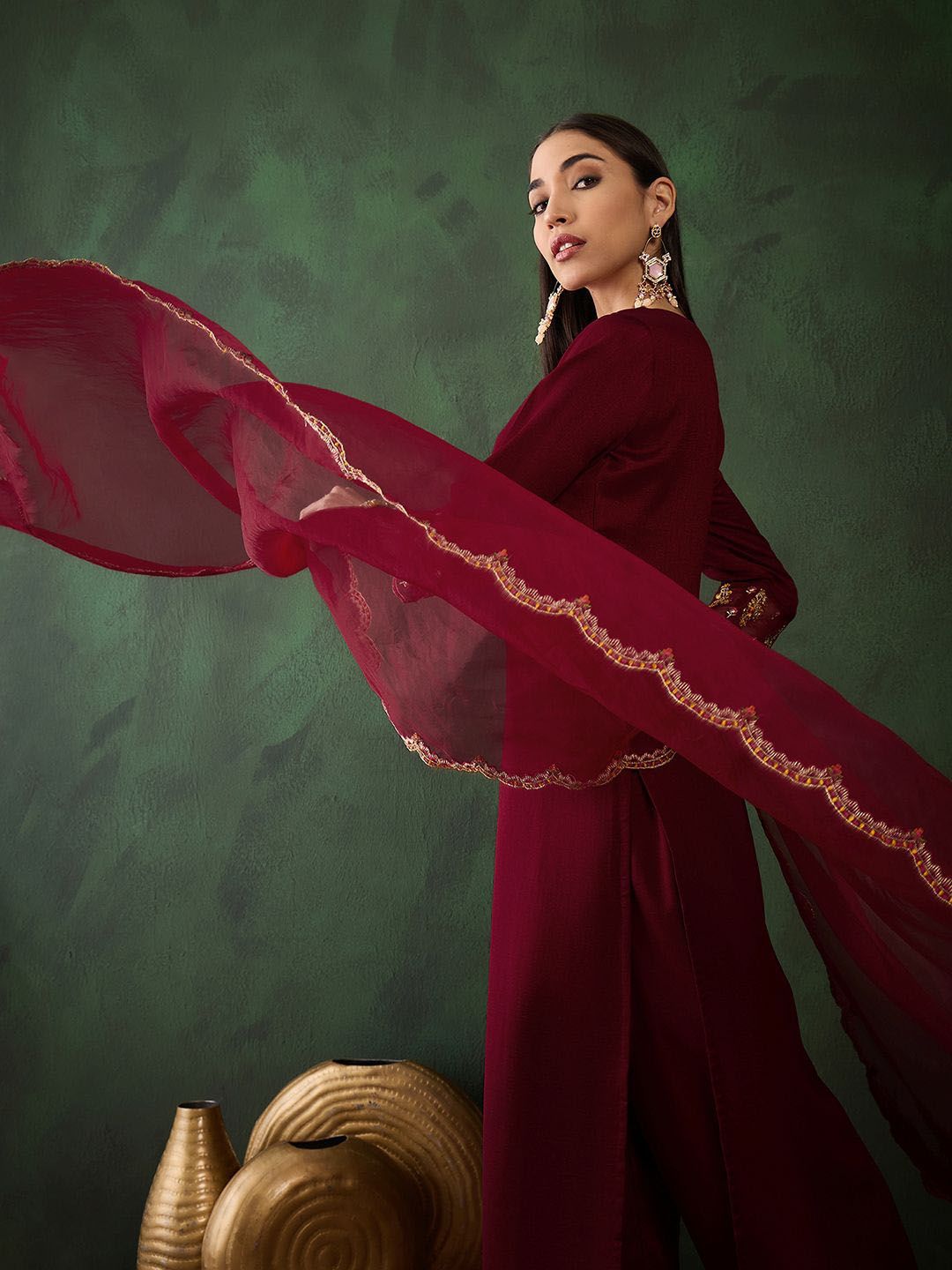 This kurta set consists of kurta, trousers and dupatta