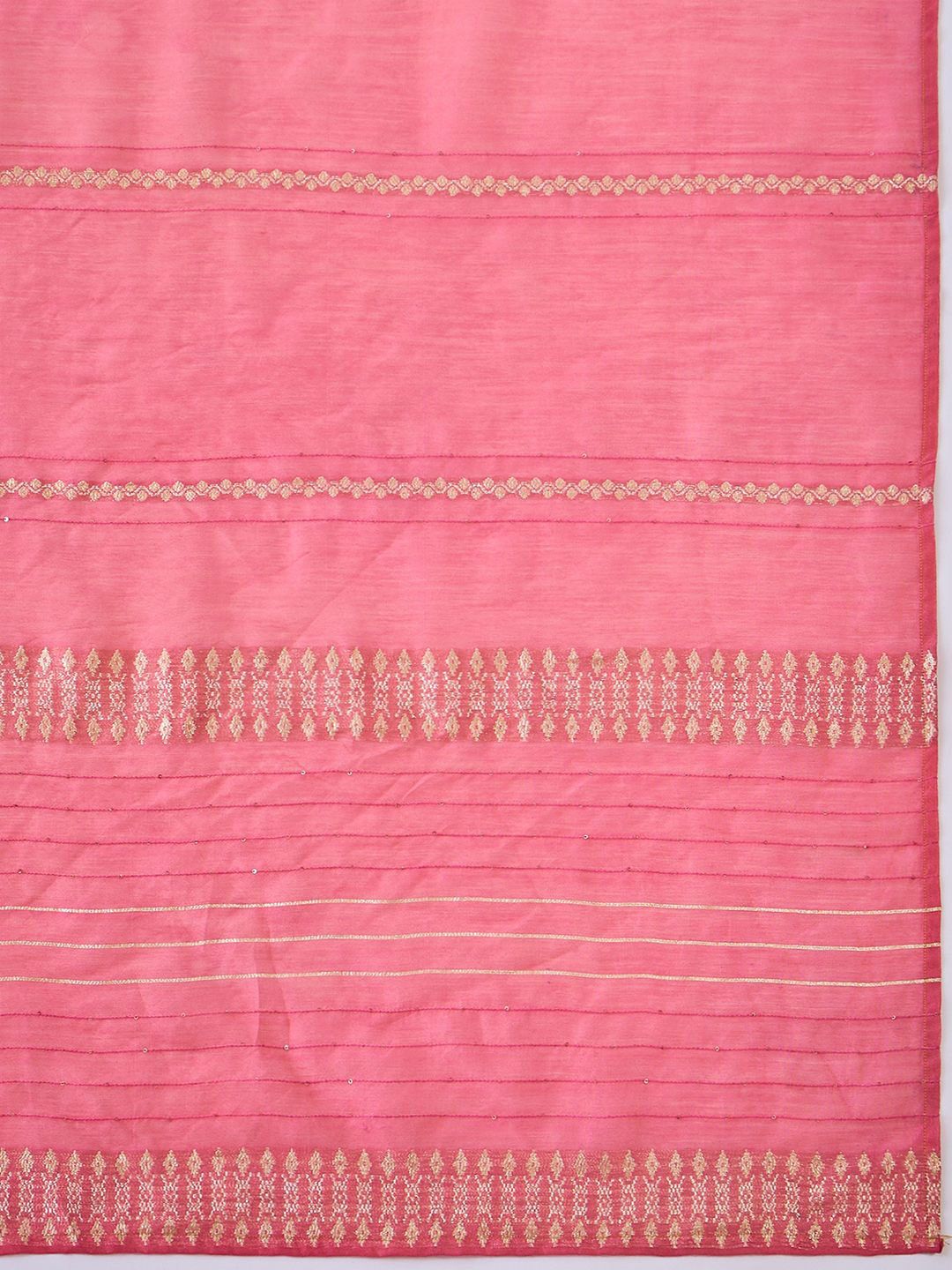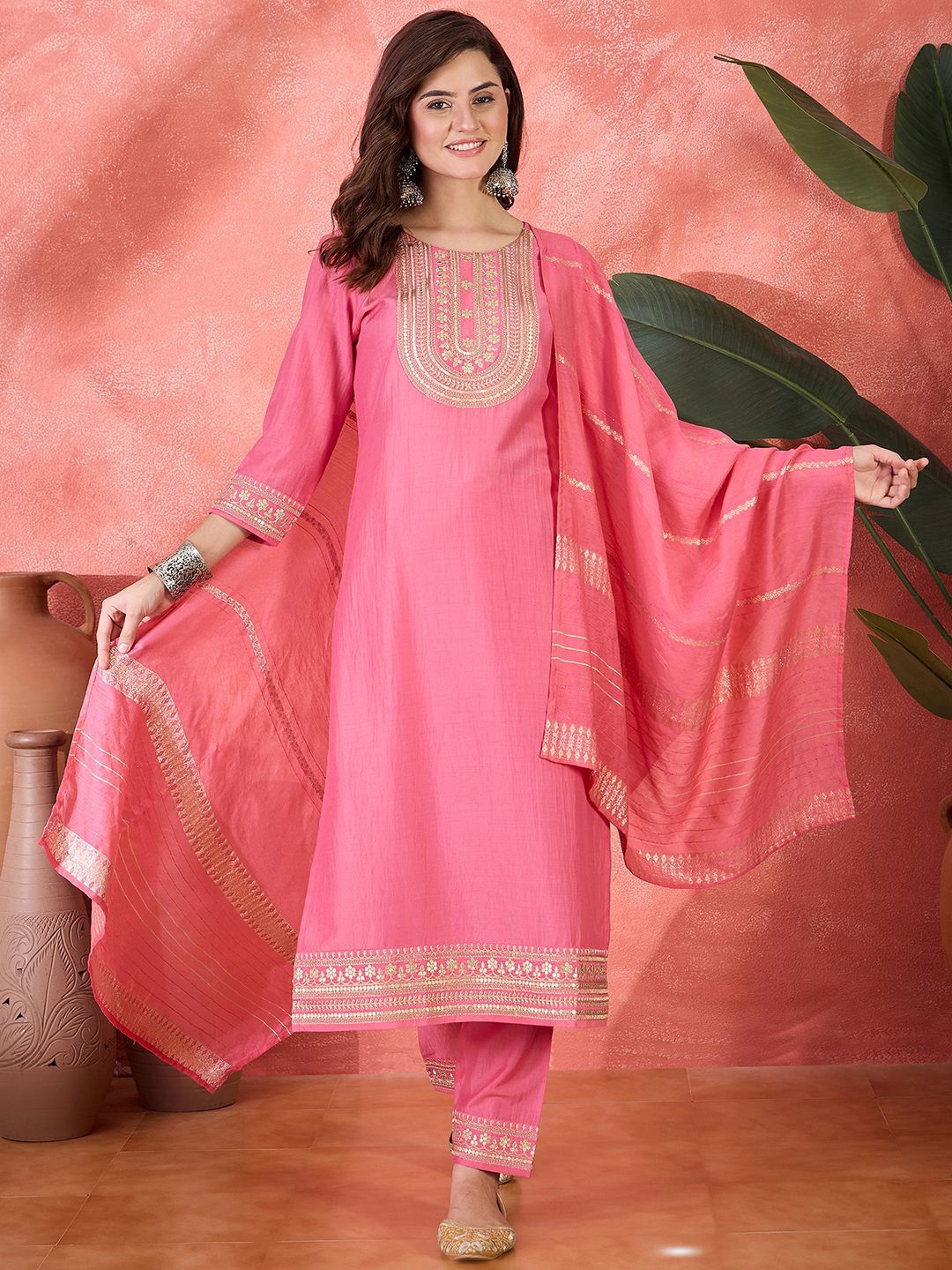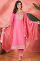 Pink & Gold Embroidered Kurta with Trousers & Dupatta