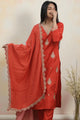 Rust Embroidered Kurta with Pyjamas & Dupatta