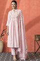 Dhiyona SN Women's Floral Embroidered Mandarin Collar Cotton A-Line Kurta With Trouser & Dupatta
