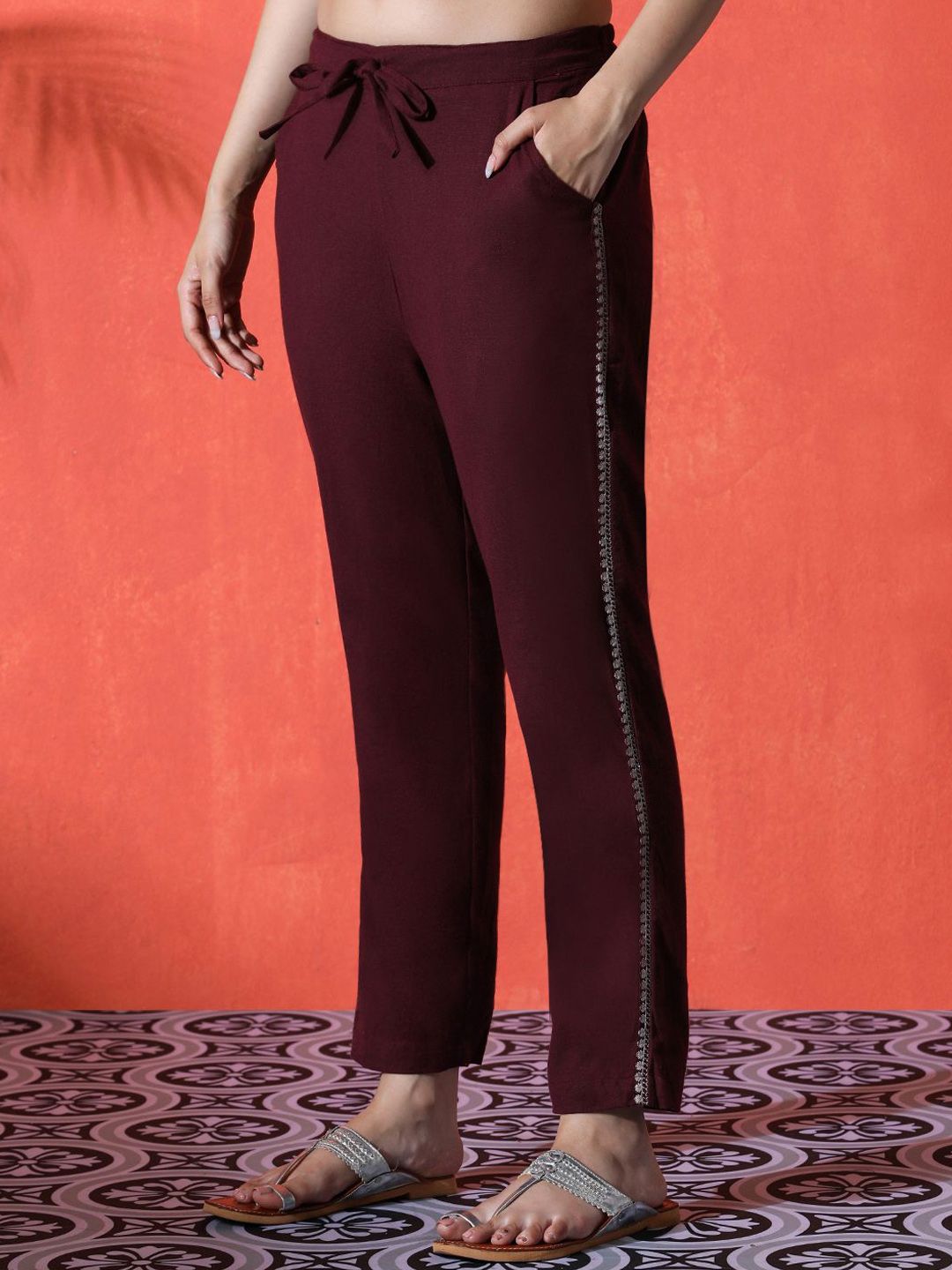 Maroon solid trousers