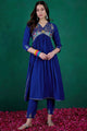 Dhiyona SN Women's Floral Embroidered Sequinned V-Neck Empire A-Line Kurta With Trousers