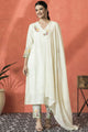 Dhiyona SN Women's Floral Embroidered V-Neck Sequinned Cotton Straight Kurta With Trouser & Dupatta