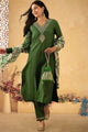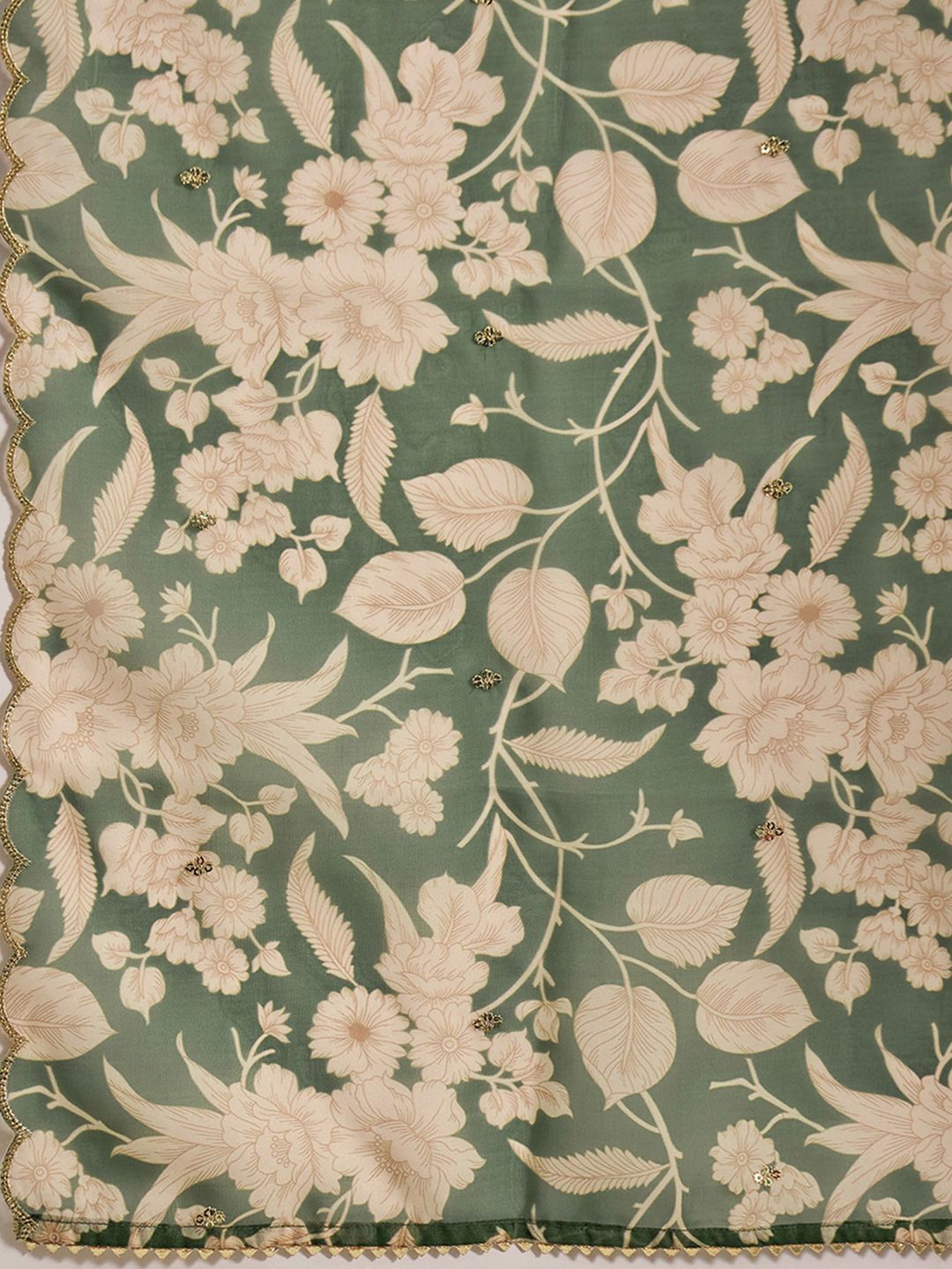Green and gold-toned and white yoke design kurta with trouser and dupatta