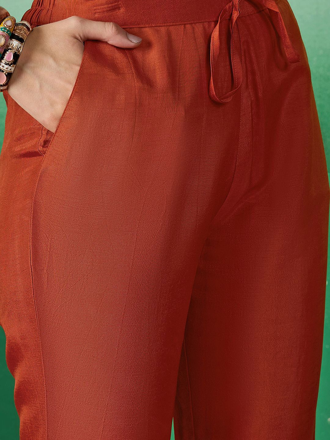 - Orange solid trousers