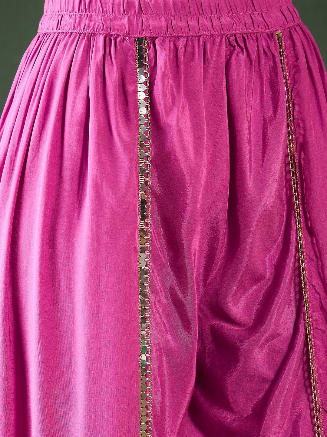 Dhiyona SN Women's Pink Bandhani Printed Gotta Patti Asymmetric Kaftan With Dhoti Pant