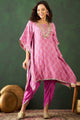 Pink bandhani printed gotta patti kaftan & dhoti pants