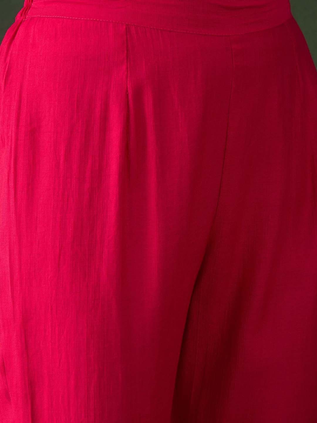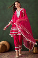 Pink floral embroidered mirror work a-line kurta with trousers & dupatta
