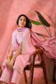 Pink, gold-toned and white embroidered kurta with trousers and dupatta