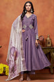 Dhiyona SN Women's Purple Floral Embroidered Cotton Silk Anarkali Kurta With Trousers And Dupatta