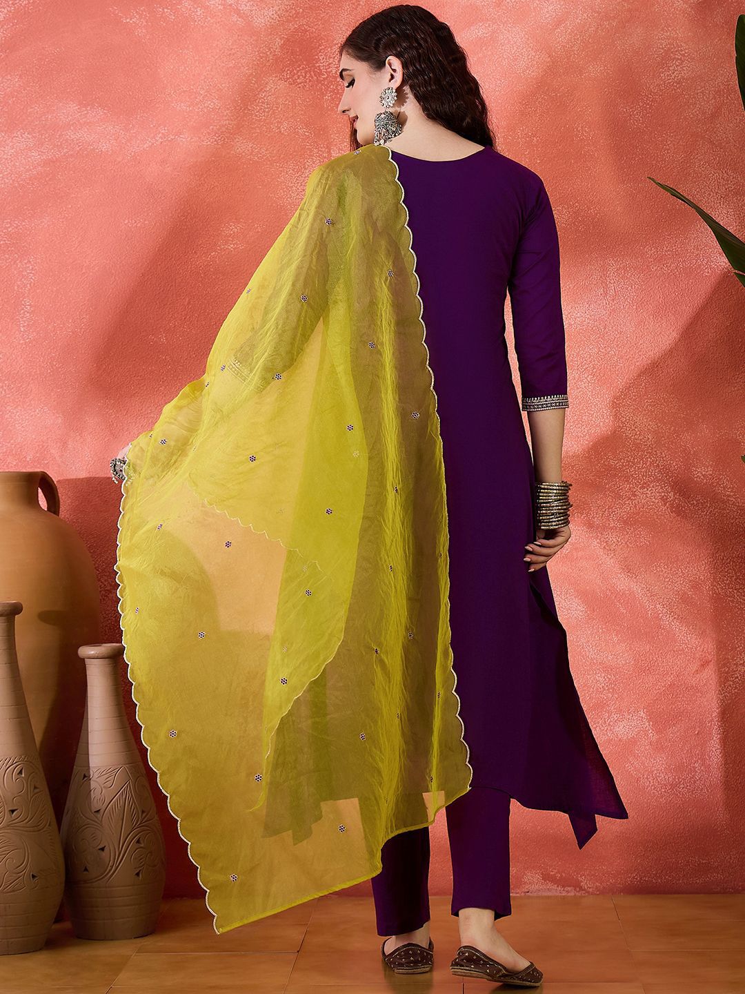 Dhiyona SN Women's Zari Sequence Cording Embroidered Kurta With Trousers & Dupatta