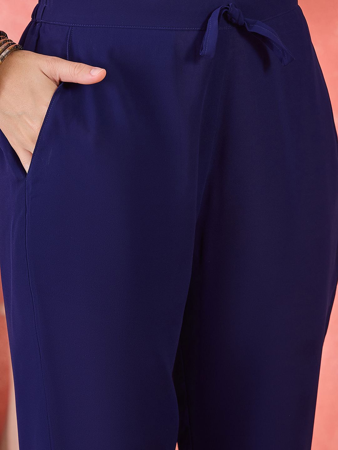 Navy blue solid trousers