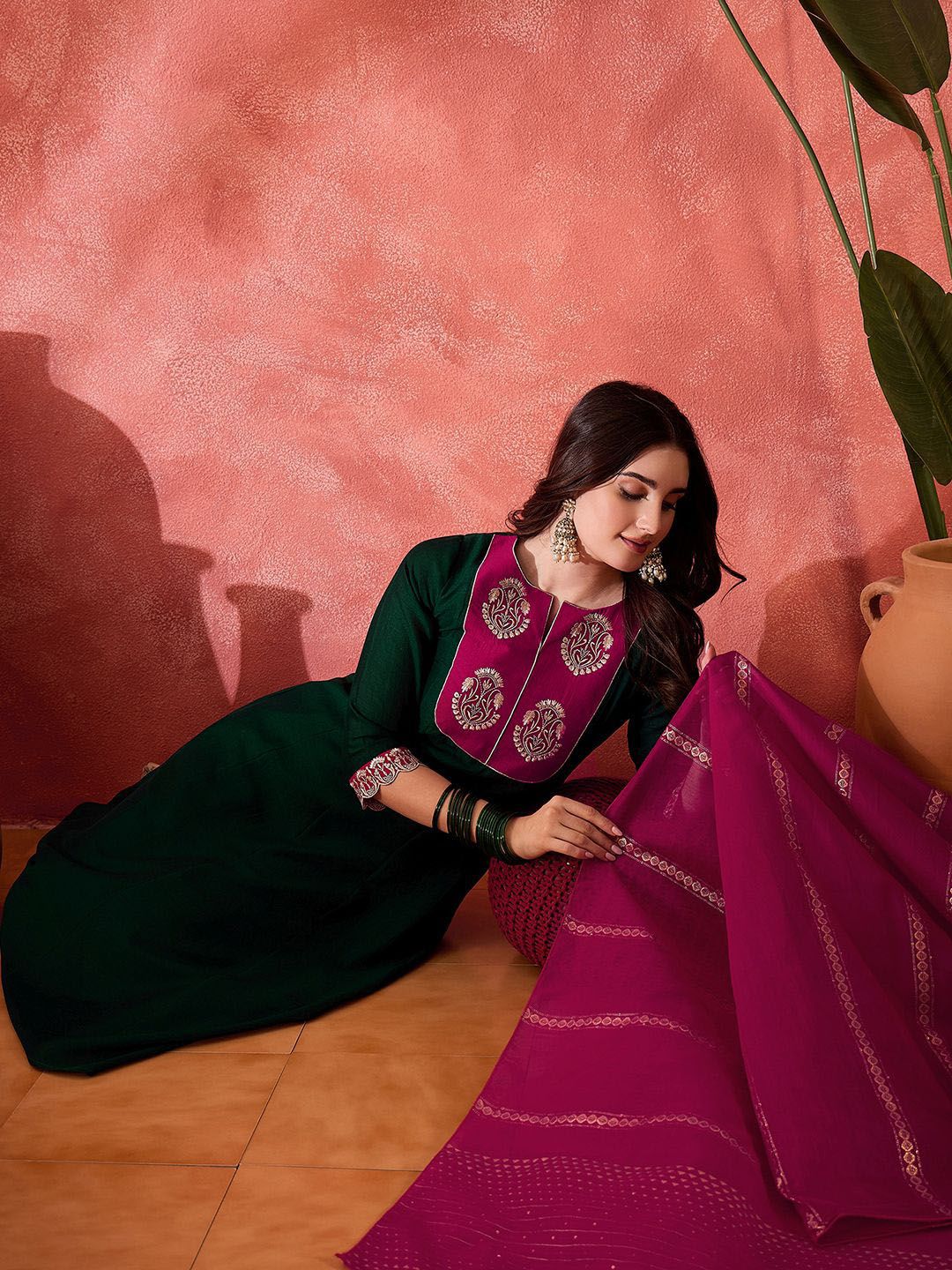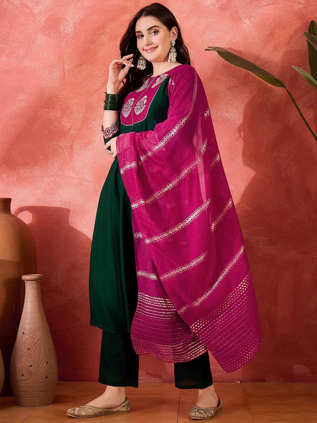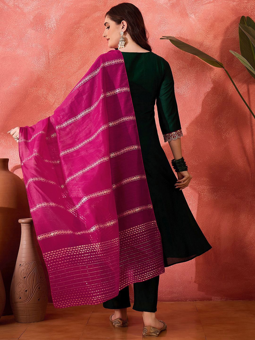 Dhiyona SN Women's Zari Sequence Thread Embroidery Kurta With Trousers & Dupatta