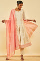 Cream coloured embroidered Kurta with Trousers & dupatta