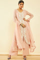 Pink, white regular kurta with palazzos with dupatta