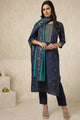 Navy blue, white & Green printed Kurta with Trousers with dupatta