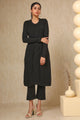 Dhiyona SO Women's Black Geometric Woven Design Layered Acrylic Straight Kurta With Trouser