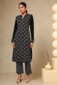Dhiyona SO Women's Black Geometric Woven Design Mandarin Collar Acrylic Straight Kurta With Trouser