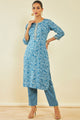 Blue printed Kurta with Trousers