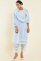 Dhiyona SO Women's Blue & White Floral Embroidered Chanderi Silk Kurta With Trousers & Dupatta