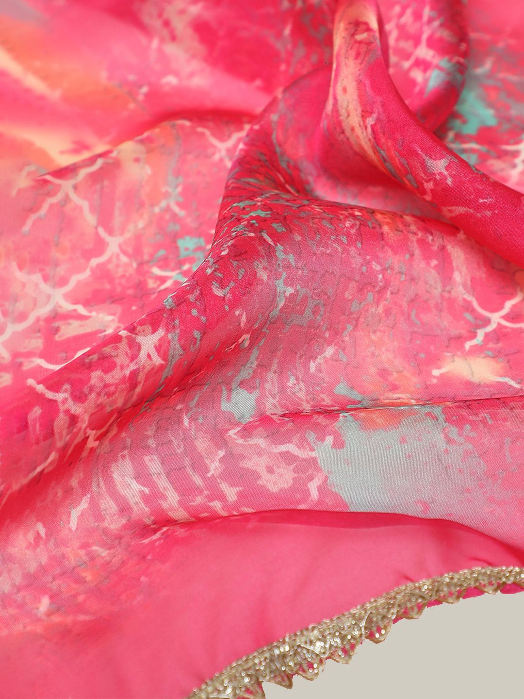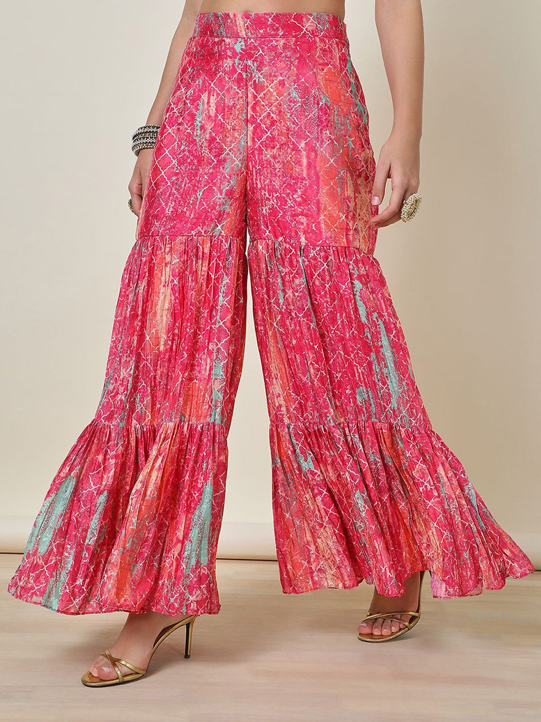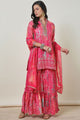 Pink & silver toned printed Kurta with Sharara with dupatta