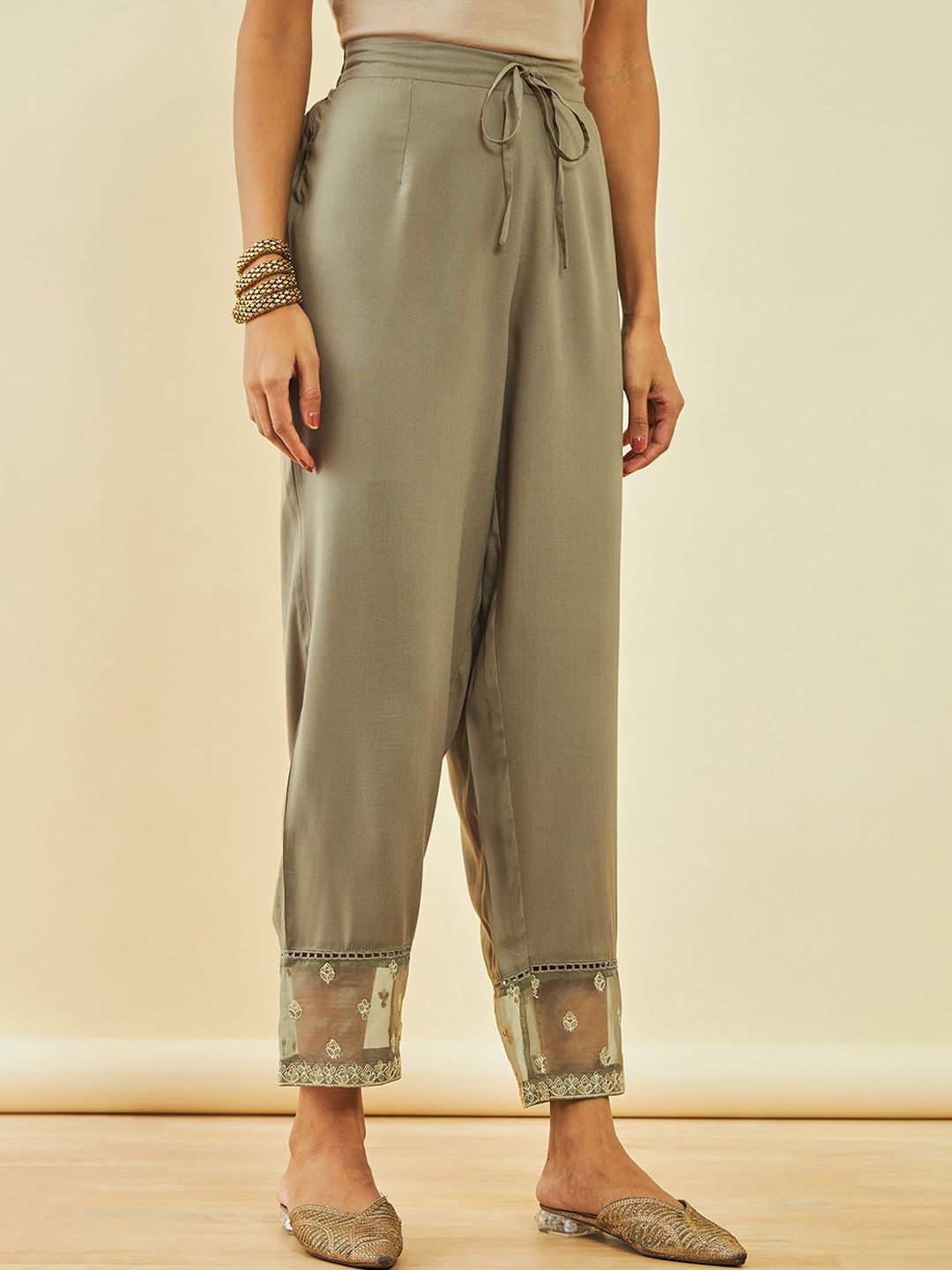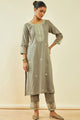Dhiyona SO Women's Brown Ethnic Motifs Embroidered Regular Sequinned Kurta With Trousers
