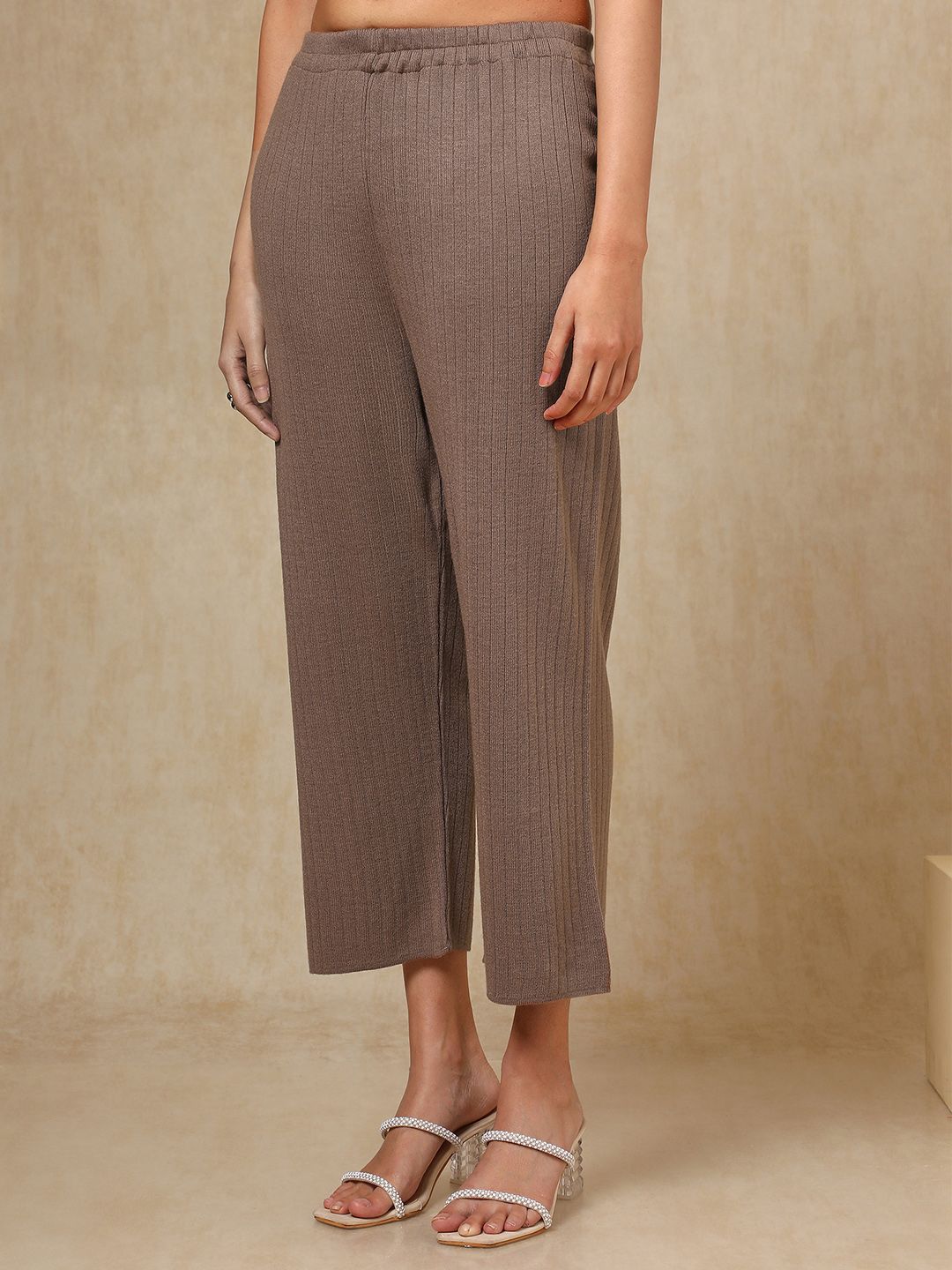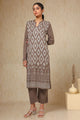 Dhiyona SO Women's Brown Geometric Woven Design Mandarin Collar Acrylic Straight Kurta With Trouser