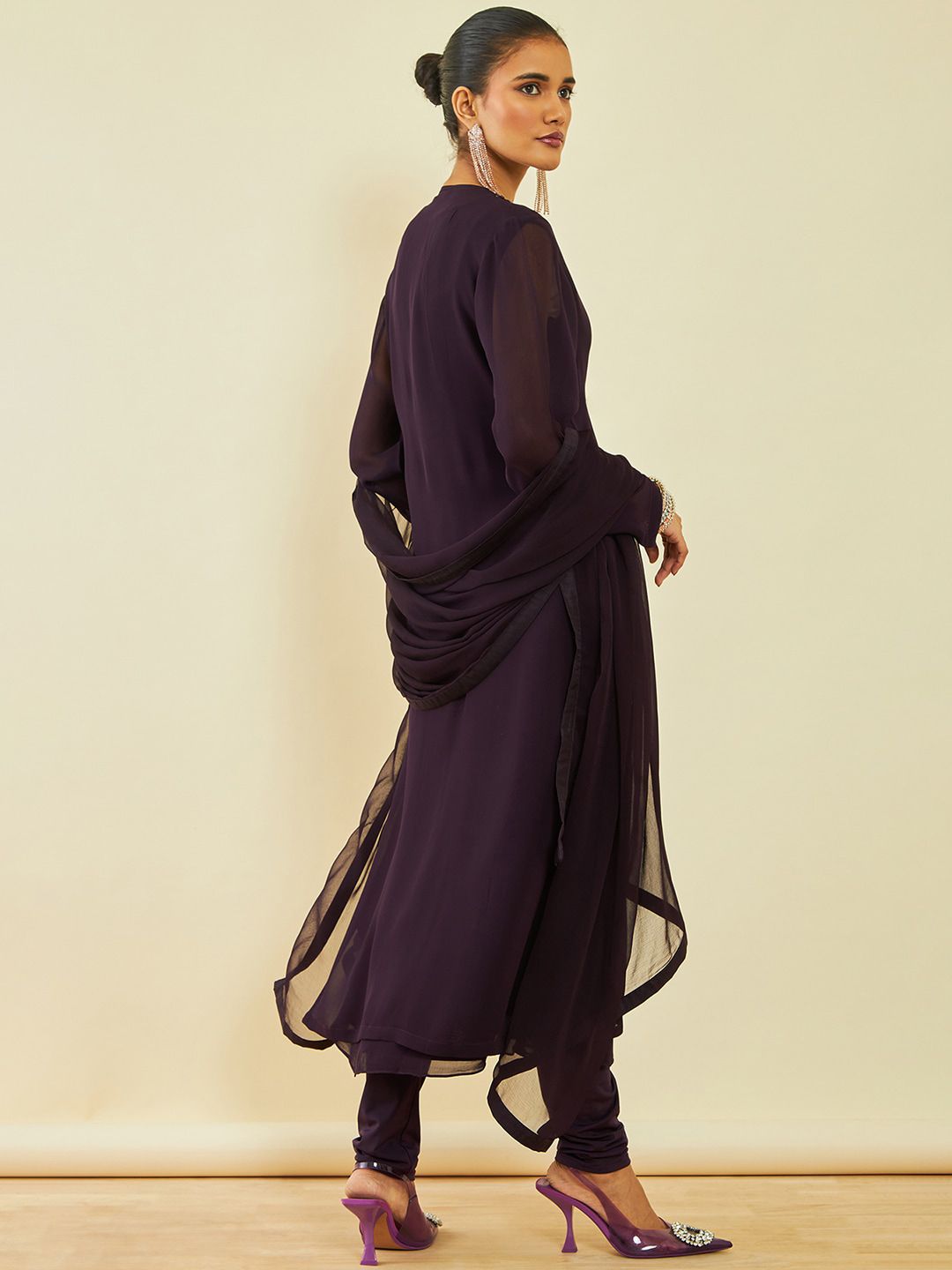 Burgundy embroidered Kurta, Shrug with Churidar & dupatta