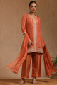 Rust & Gold-toned embroidered Kurta with Palazzos with dupatta