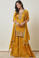 Mustard yellow & Silver Pink embroidered Kurti with Palazzos with dupatta