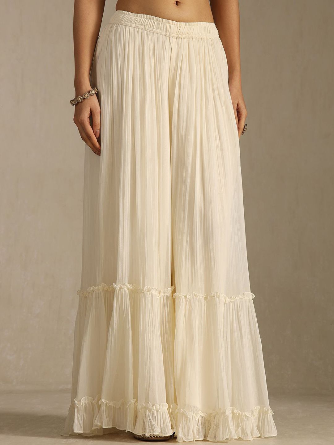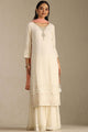 Off white,coral and gold toned embroidered kurta with palazzos and dupatta