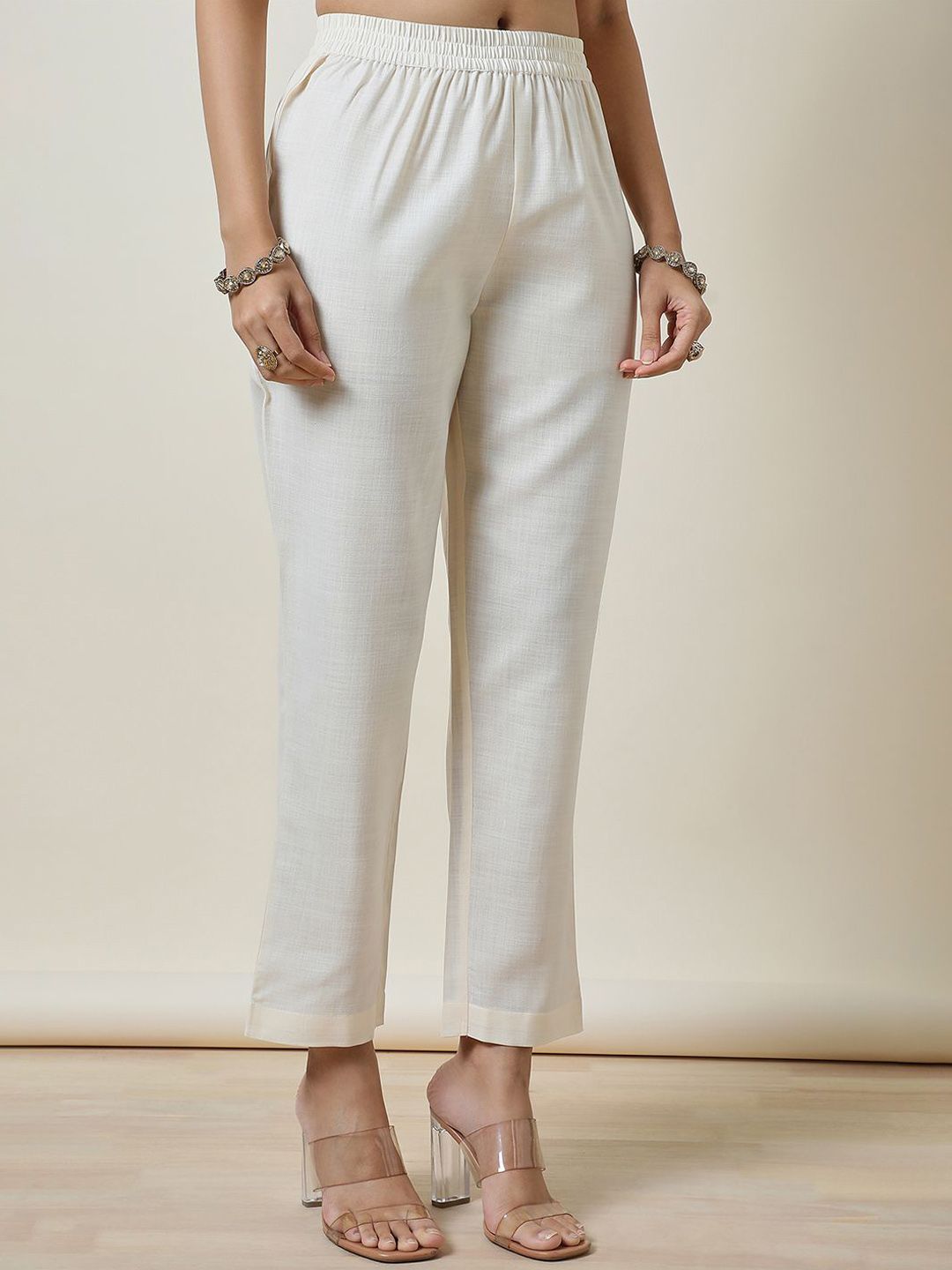 Dhiyona SO Women's Ethnic Motifs Embroidered Chanderi Silk A-Line Kurta with Trousers & With Dupatta