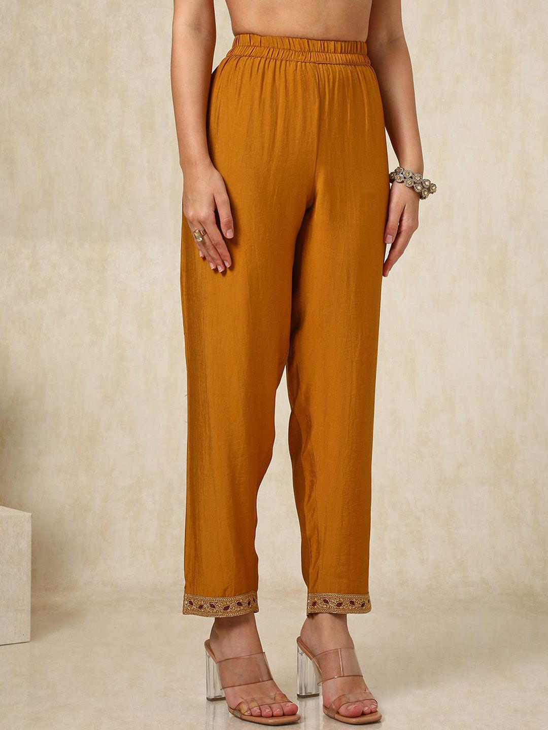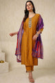 Mustard yellow & purple ,red embroidered Kurta with Trousers with dupatta
