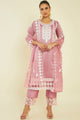 Pink and white embroidered Kurta with Palazzos & dupatta