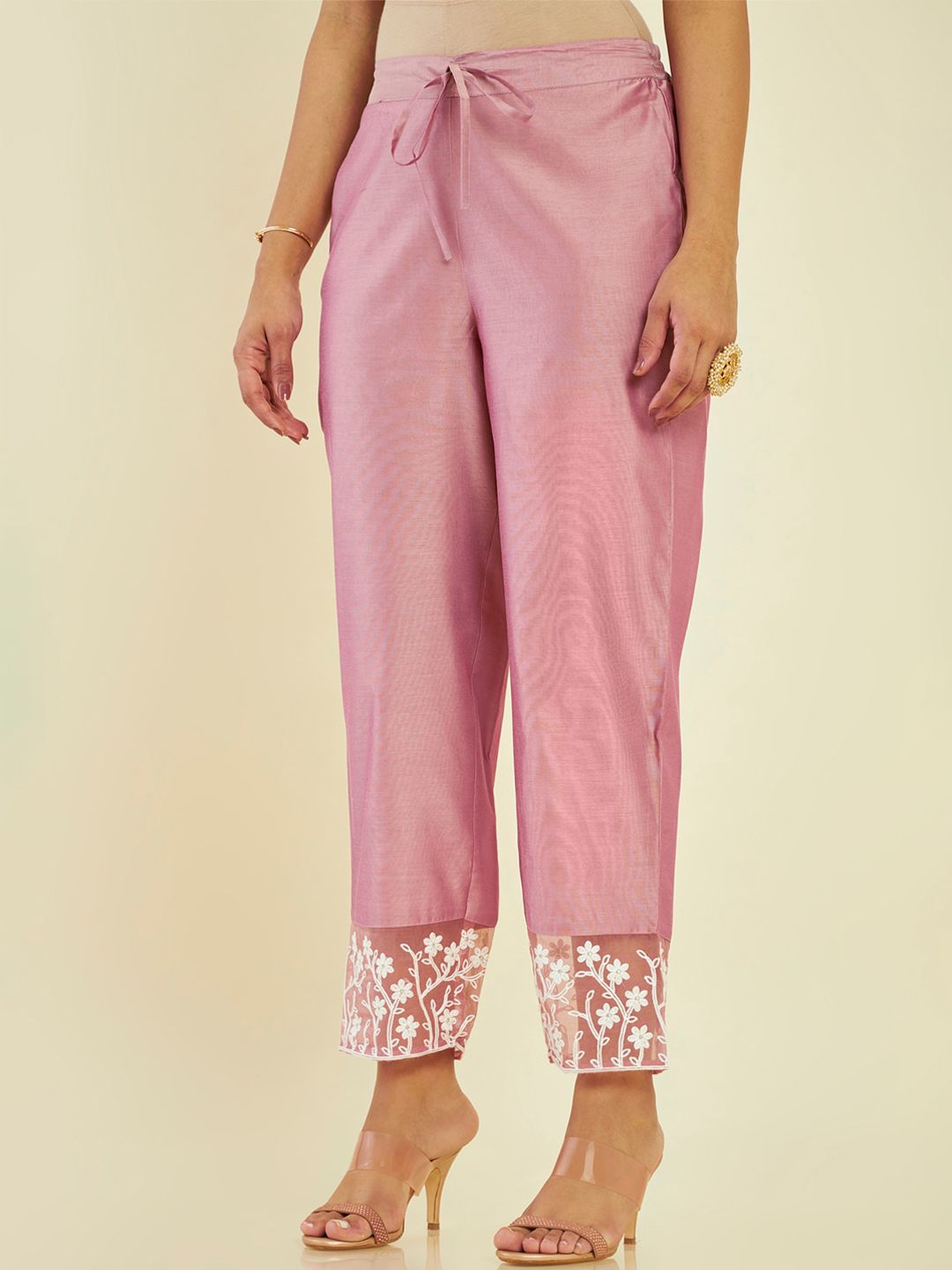 Dhiyona SO Women's Ethnic Motifs Embroidered Panelled Chanderi Silk Kurta with Palazzos & Dupatta