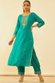 Dhiyona SO Women's Ethnic Motifs Embroidered Regular Mirror Work Kurta with Trouser