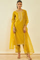 Mustard yellow & gold tonned ethnic motif embroidered Kurta with Trousers with dupatta