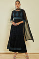 Dhiyona SO Women's Ethnic Motifs Embroidered Sequinned A-line Kurta with Trousers & With Dupatta