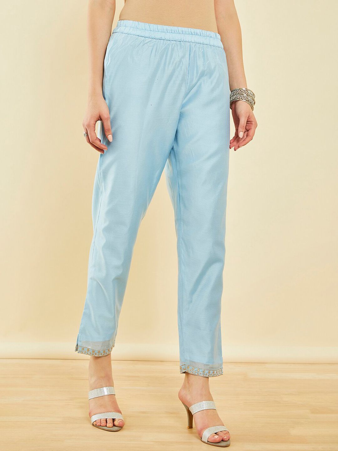 Dhiyona SO Women's Ethnic Motifs Embroidered Sequinned Chanderi Silk Kurta With Trousers & Dupatta