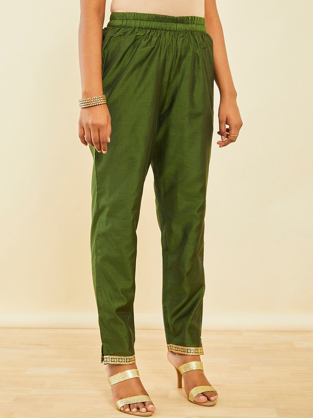 Green embroidered kurta & trousers with dupatta