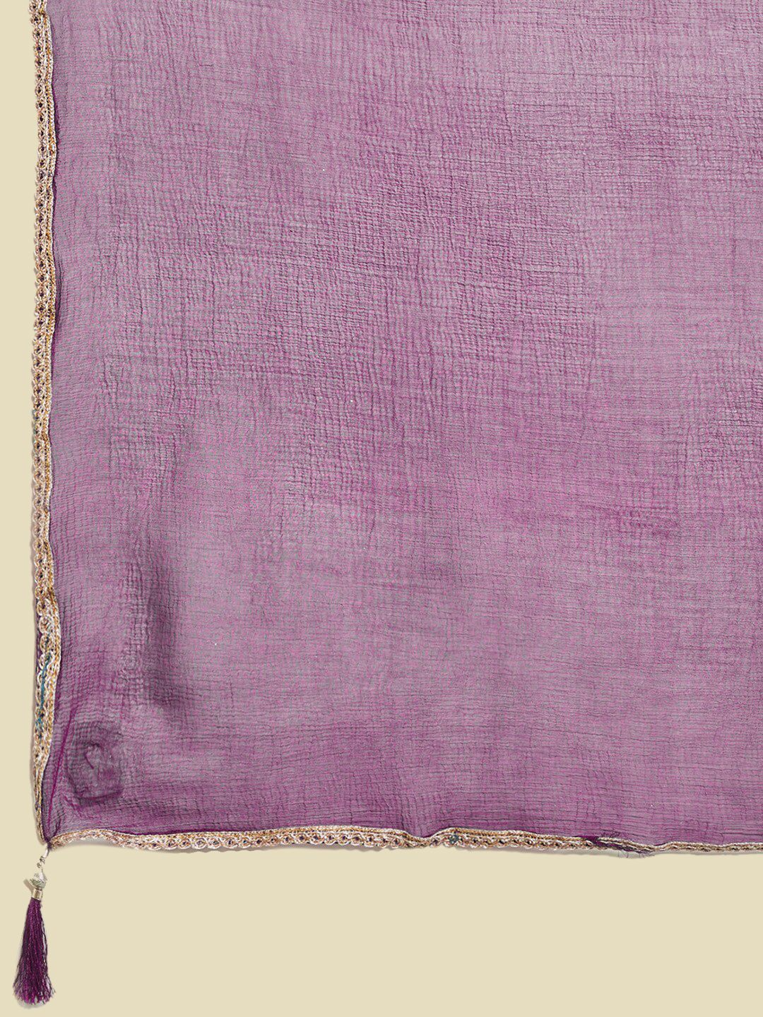 Dhiyona SO Women's Ethnic Motifs Embroidered Sequinned High Slit Kurta With Palazzos & Dupatta