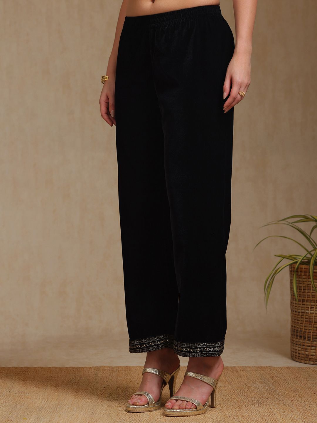 Dhiyona SO Women's Ethnic Motifs Embroidered Thread Work Velvet Kurta With Palazzo & Dupatta
